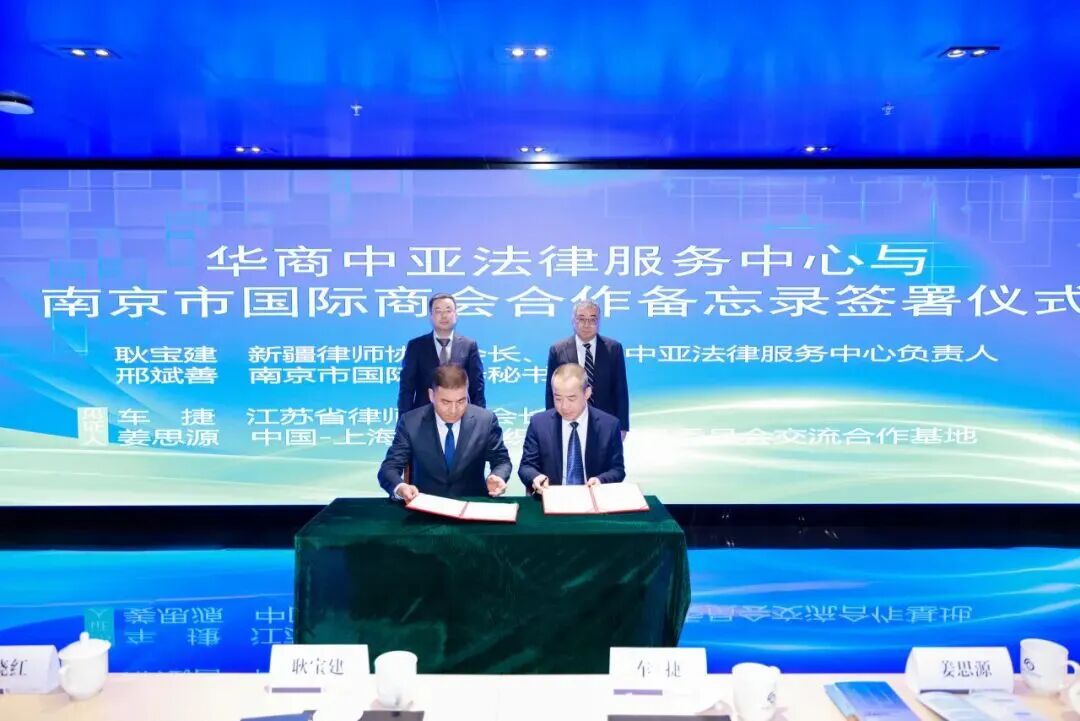 交流会现场亮点纷呈,两项重要仪式的举行成为推动中亚投资服务体系建设的关键举措。在合作备忘录签署环节,新疆律师协会会长、华商中亚法律服务中心负责人耿宝建与南京市国际商会秘书长邢斌善先生代表双方签约,江苏省律师协会会长车捷、中国-上海合作组织法律服务委员会交流合作基地秘书长姜思源先生担任见证人。此次签约将整合双方资源优势,为企业拓展中亚业务提供更高效的协同服务。