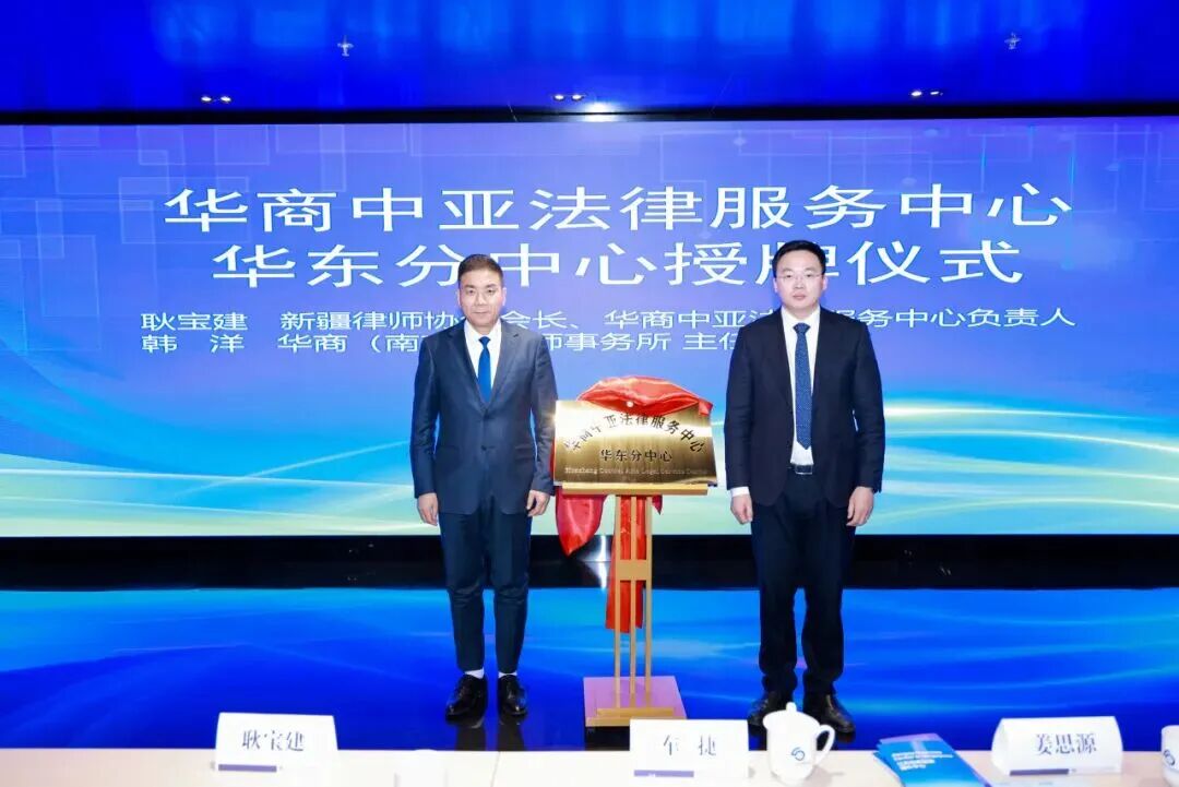 在授牌仪式上,耿宝建会长为华商(南京)律师事务所授予 “华商中亚法律服务中心华东分中心” 牌匾,华商(南京)律师事务所主任韩洋接牌,华商(南京)律师事务所将以此为契机,充分发挥区位与专业优势,为企业对接中亚市场提供更便捷、专业的法律服务支持。