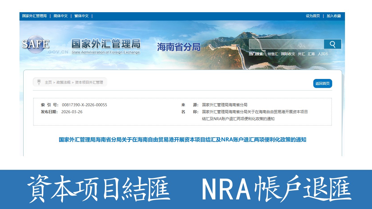 允許非關聯企業借款、優化退匯流程,海南自由貿易港落地資本项目結匯及NRA帳戶退匯兩項便利化政策